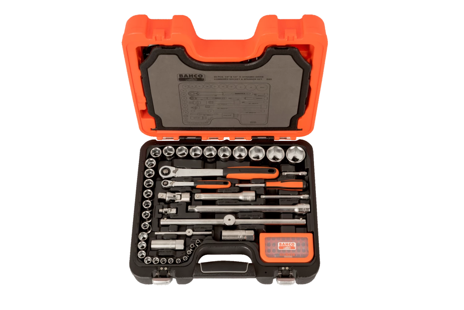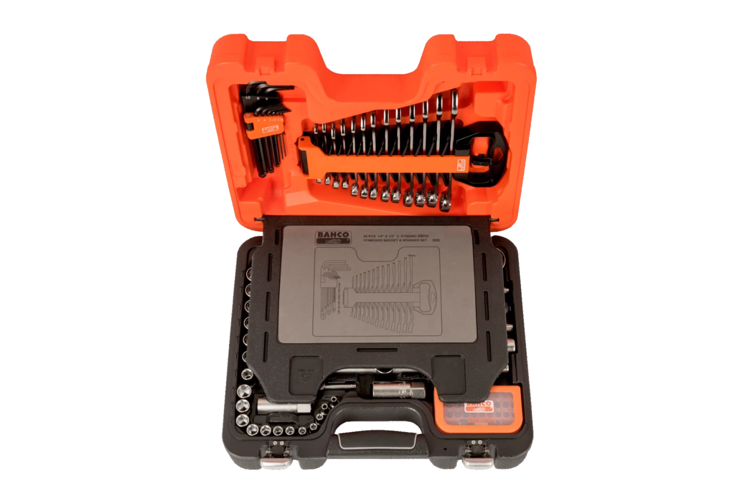 Bahco S95 Jeu de douilles 1/4″ et 1/2″, avec clés à anneau, clés à douille et embouts, 95 pièces