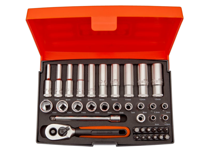 Bahco SL25L Jeu de clés à douille 1/4″ métrique 4-13 mm, 37 pièces