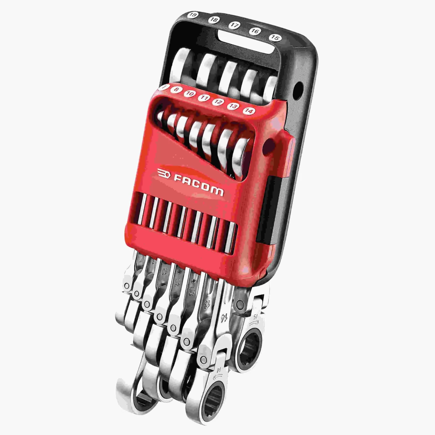 Facom 467BF.JP12PB Jeu de clés à cliquet articulées, dimensions métriques dans un support