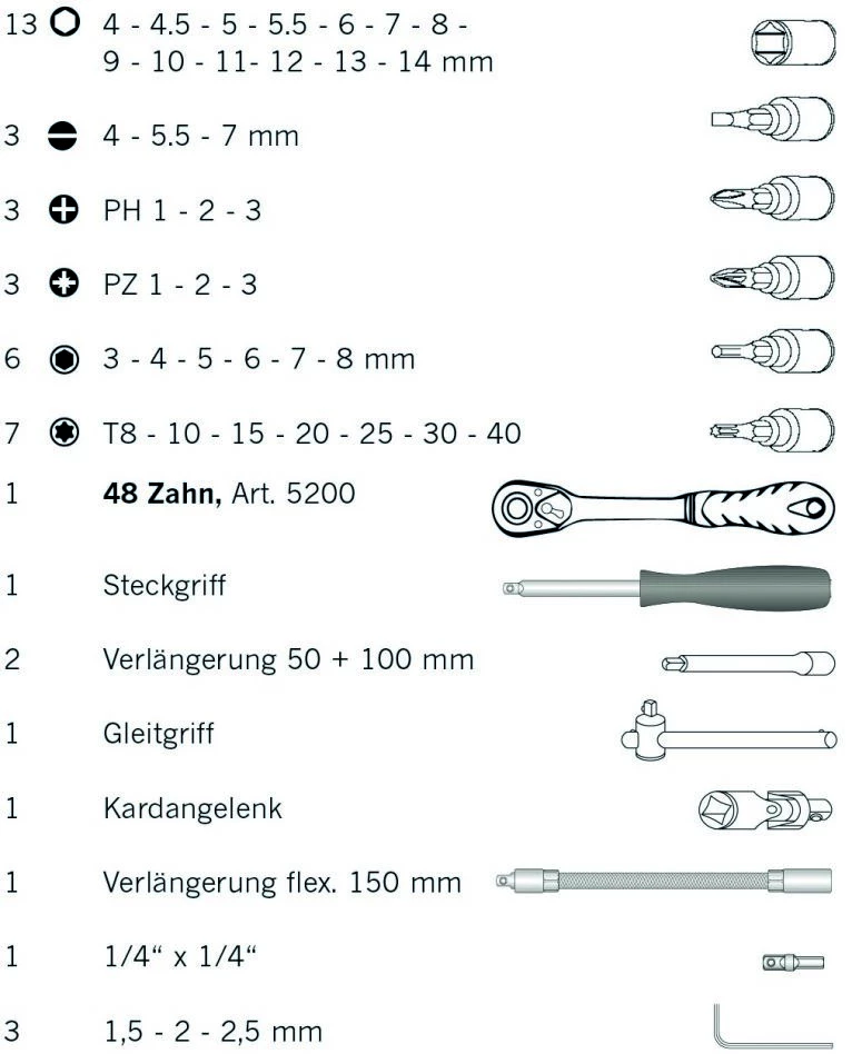 - 3 Clé Allen 1,5 – 2 – 2,5 mm Jeu de clés à douille 1/4″, 46 pièces Proficraft, cliquet 48 dents