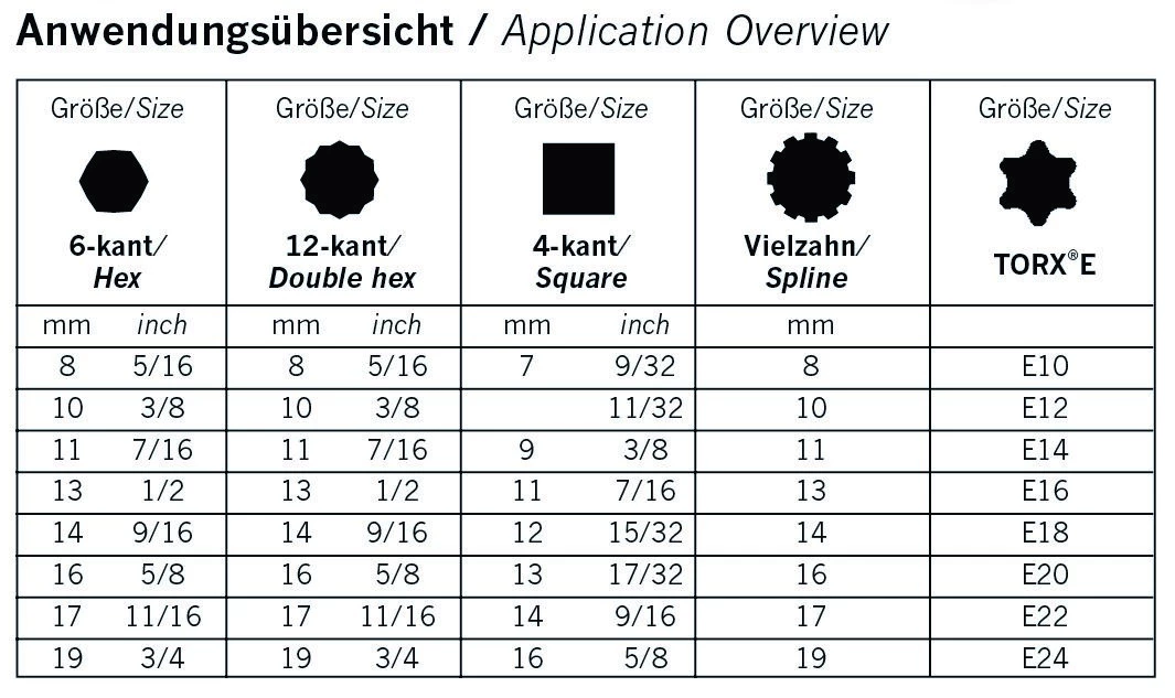 - Geschikt voor metrische en inch-schroefaandrijvingen