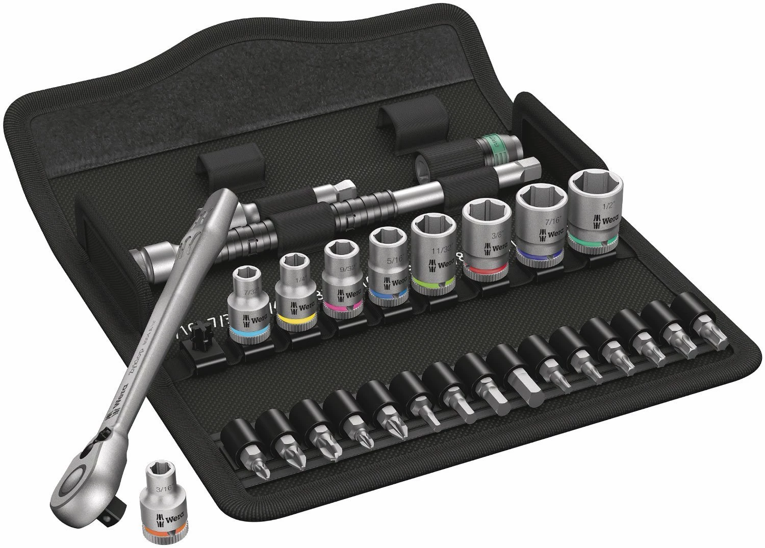 Wera 8100 SA 11 Zyklop Jeu de cliquets en métal, entraînement 1/4, pouce, 28 pièces